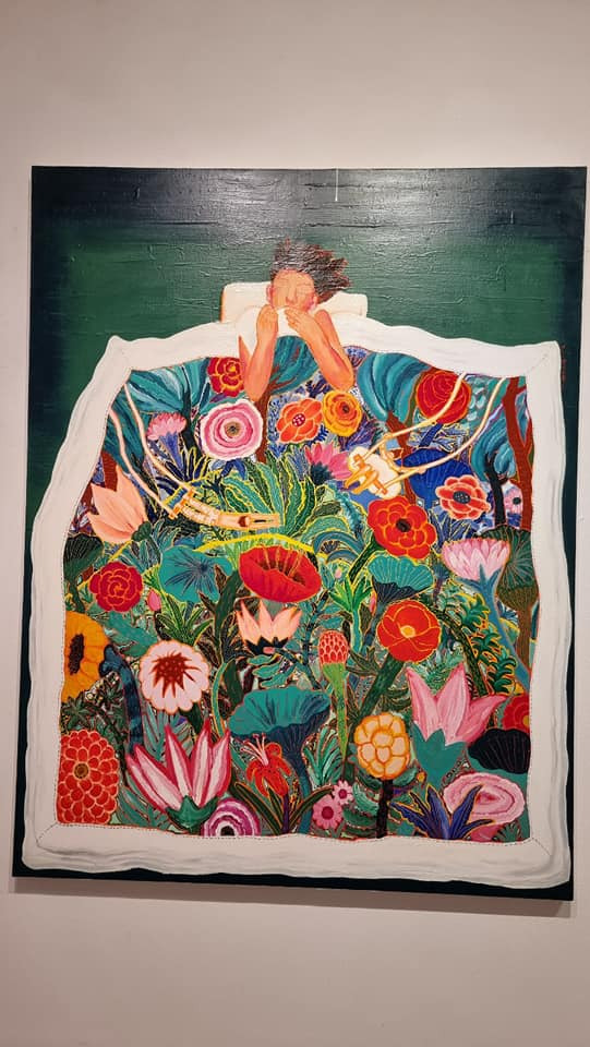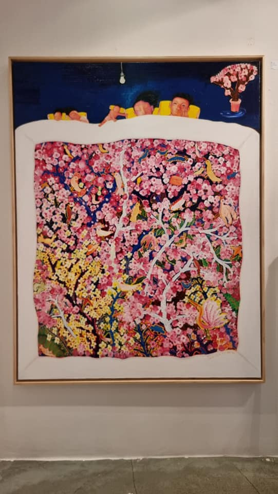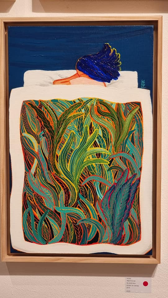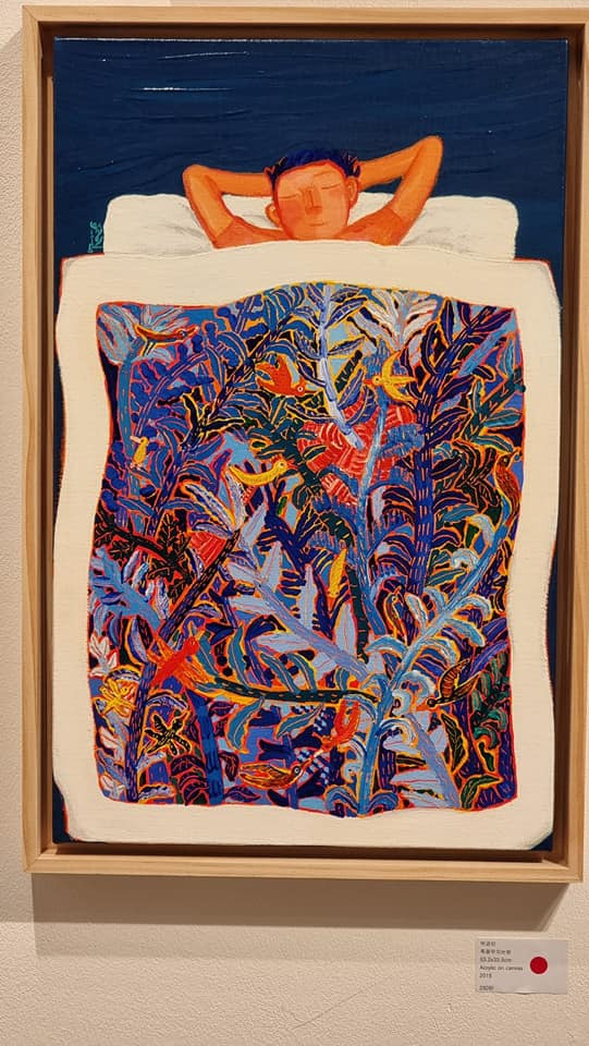 이번 개인전 '폭풍우 치는 밤'에서는 2011년부터 그린 이불 시리즈가 세상 밖으로 나와 선을 보이게 되었다.