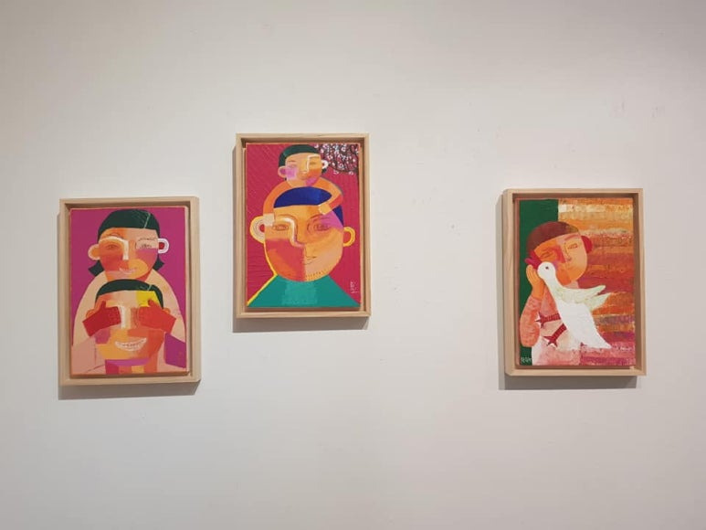 두 작가님께서 7개월 동안 준비하신 소품 각 50점씩 100점 전시 중 오늘 50점을 설치했고, 나머지 50점은 23일 오후에 설치할 예정입니다.