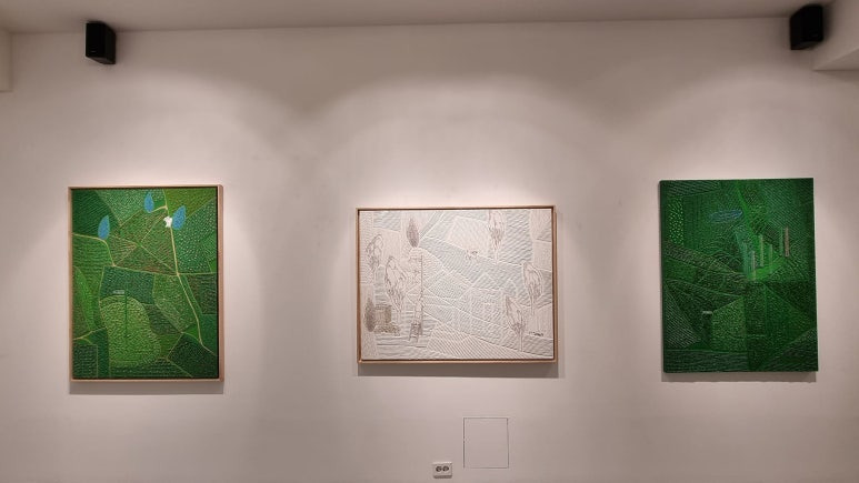 들판 시리즈를 주로 선보이는데 초록색과 흰색의 대비에서 오는 세련되고도 안정된 느낌의 작품 속에